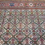 Condition is distressed and some wear in areas, it is in good structural order with no holes or tears. A beautiful and very decorative antique carpet. Our underlay would aid the carpets condition greatly, as it stops the carpet moving around on the floor adding body to it.