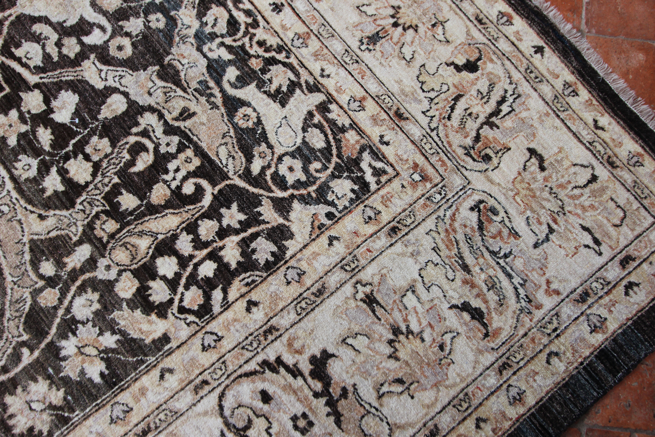 Purchase this Vintage Bidjar design carpet online, and we shall securely courier it to your home, with our excellent anti-slip rug underlay which is included in the price. Or contact us to view it at our barn showroom in Crondall, Surrey.