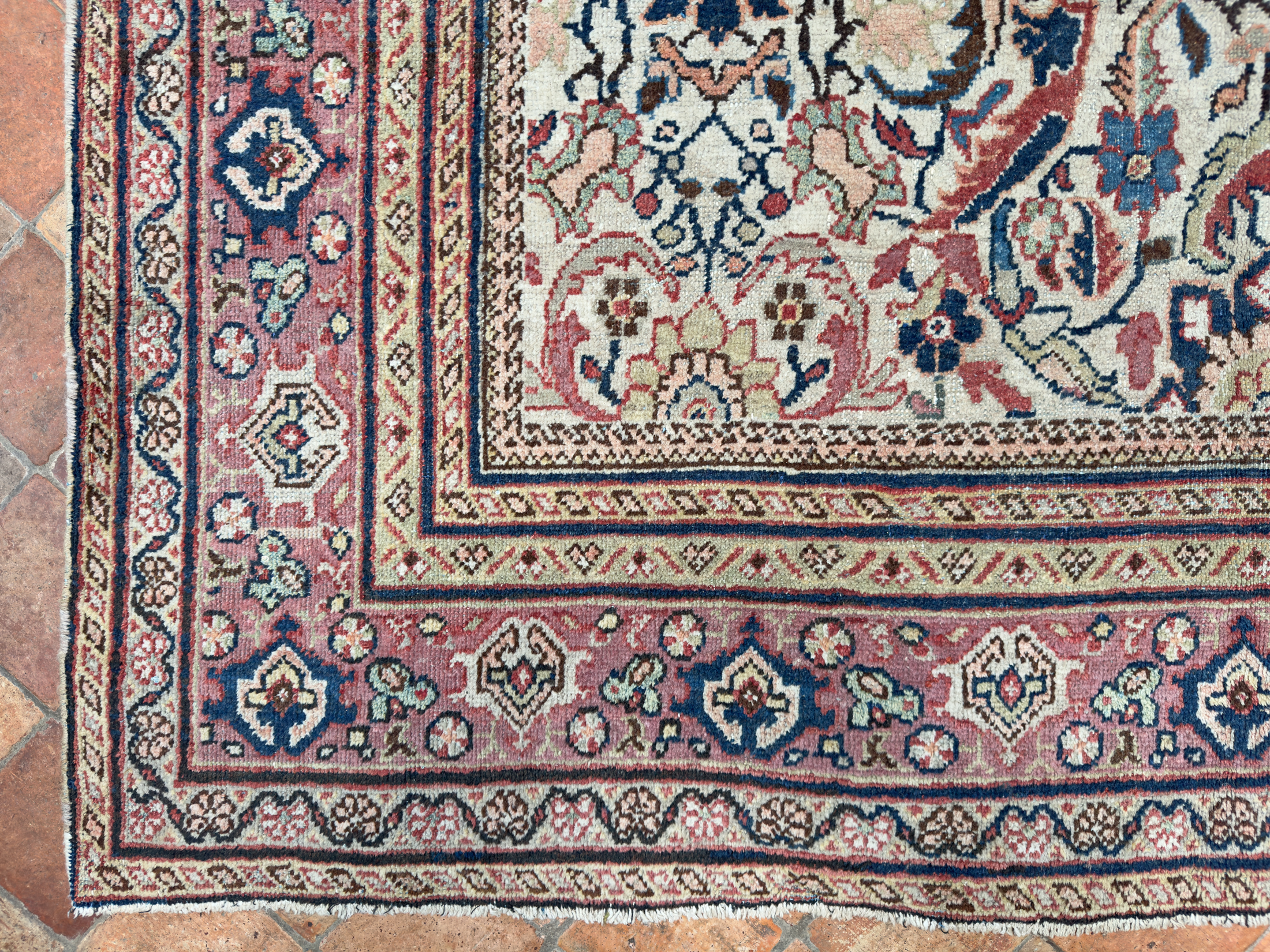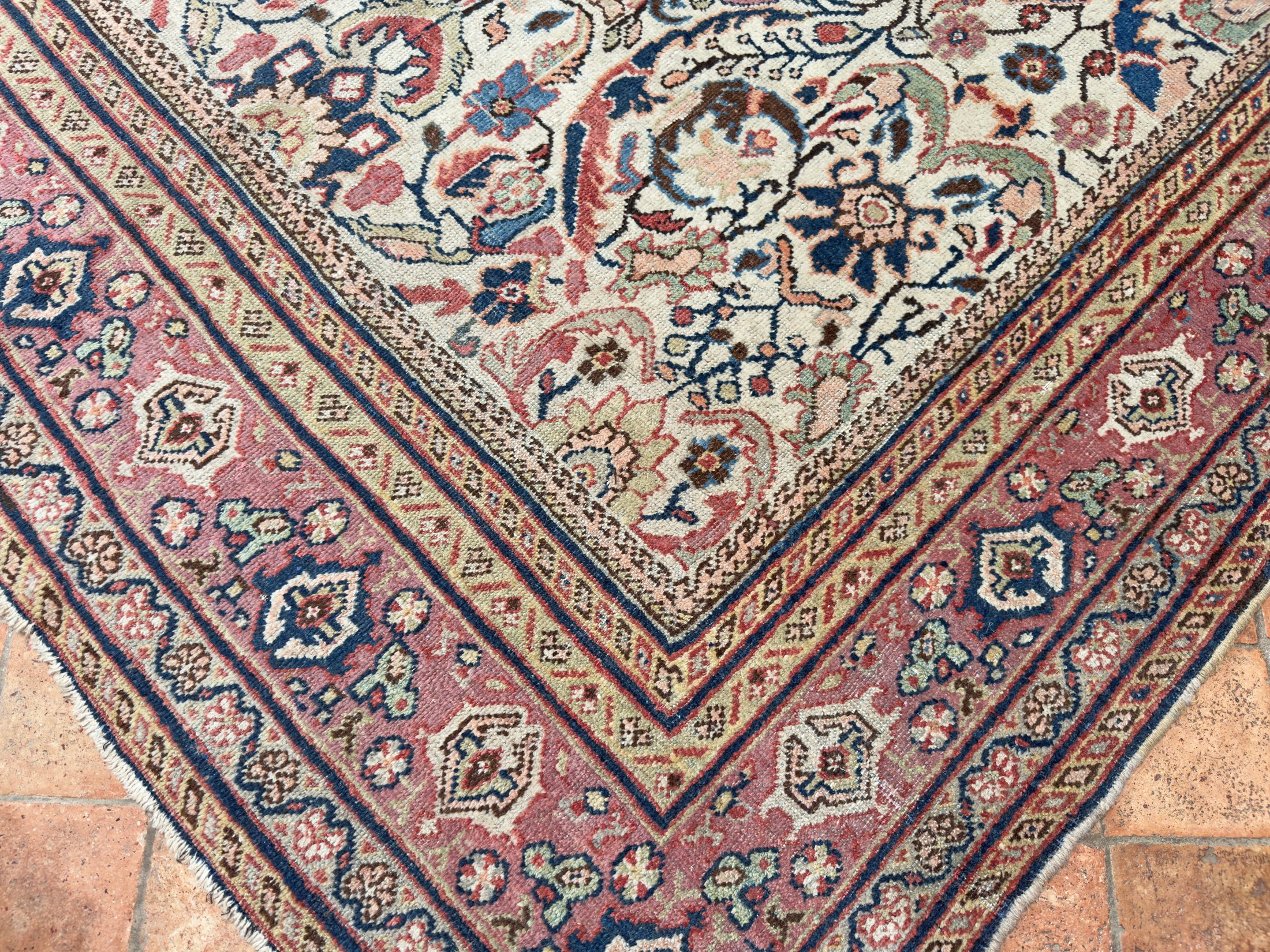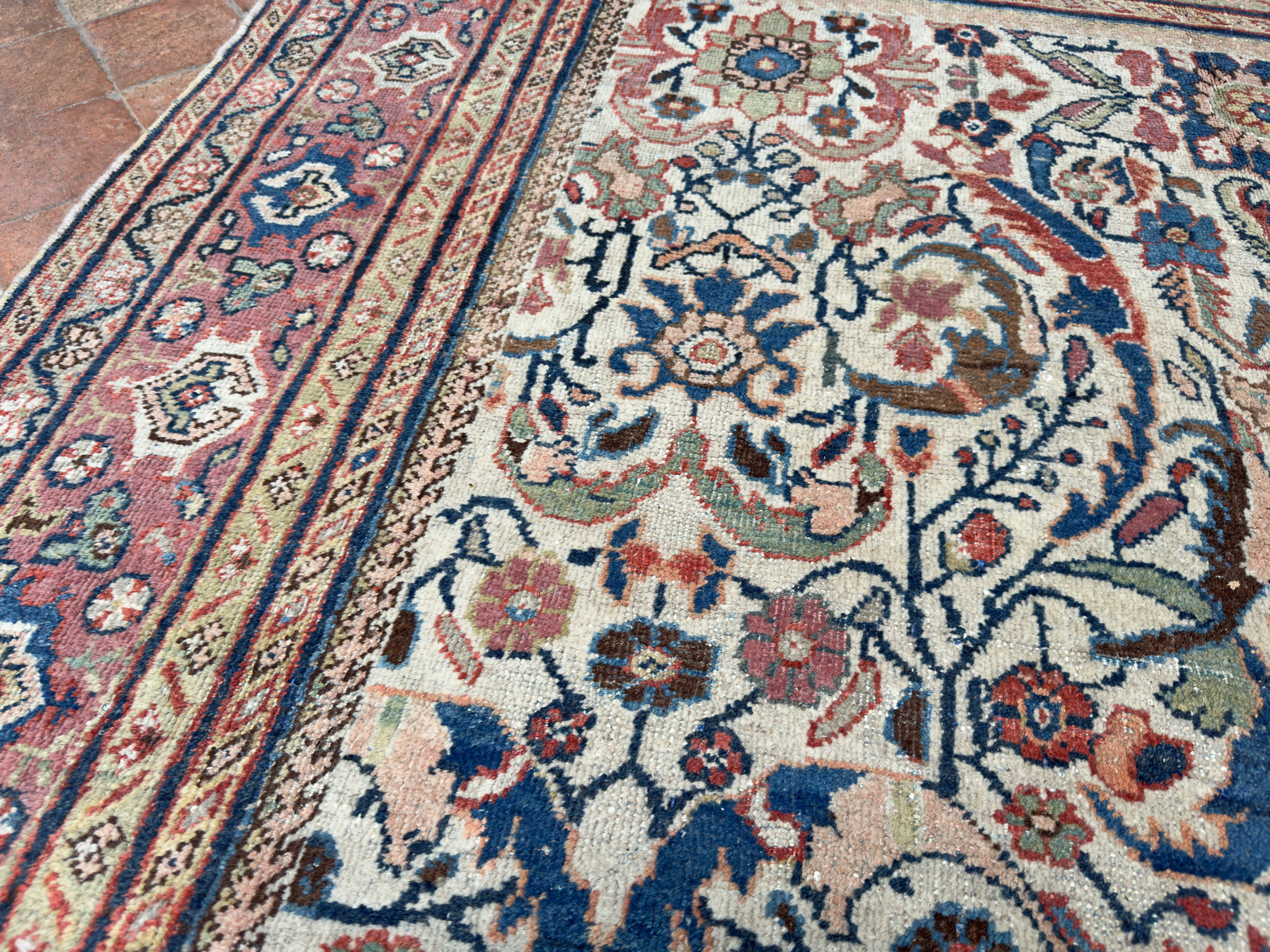 We love to help customers and interior designers source the ideal carpet for a room, if this beautiful antique Mahal carpet is of interest please contact us to arrange a time to view it in-situ or at our barn showroom in Crondall, Surrey.