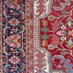 The reason Heriz rugs are so tough is that Mount Sabalan is located close to Heriz and sits on a major deposit of copper. Traces of copper in the drinking water for the sheep produces high quality wool that is far more resilient than wool from other areas.