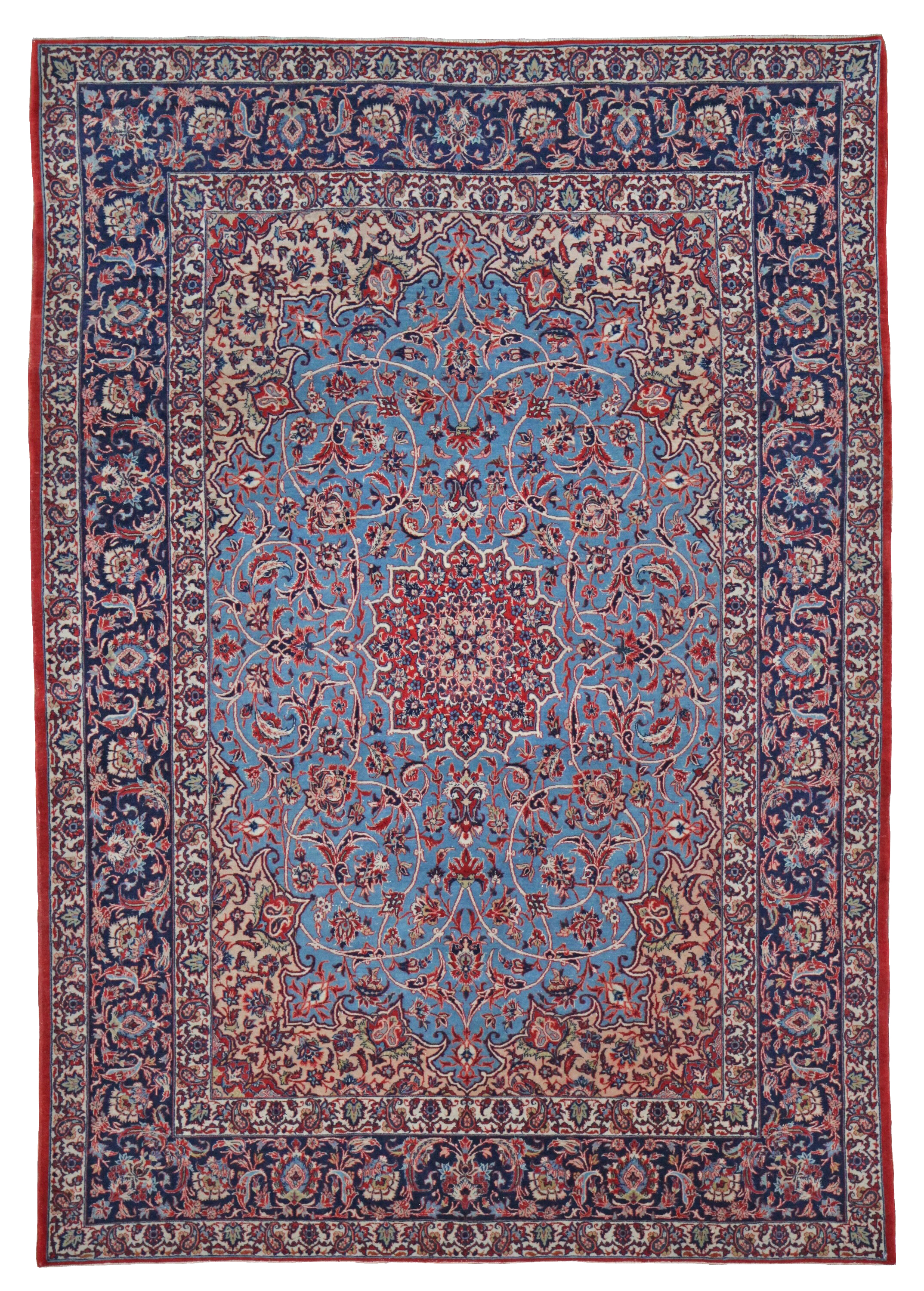 Isfahan is situated virtually in the centre of Iran, and was once the capital city. The rugs are woven in the city itself and the surrounding villages. Starting in the early 17th century, their name was renowned throughout Europe – this has continued to the present day. Although rug making was interrupted by the Afghan invasion, it quickly re-established itself as a major centre for the finest handmade carpets. This example show cases why Isfahan are famous for weaving the most detailed, beautiful fine rugs.