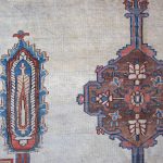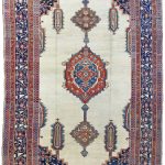 Bakshaish rugs may utilize medallion or allover designs descended from classical antique rugs, but they translate such models into a much more abstract and expressive idiom reminiscent of Caucasian village rugs. Sometimes, like village pieces, they make use of scattered space-fillers; alternatively they may apply a principle of open space to allow the effects of the drawing to stand out graphically.