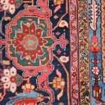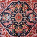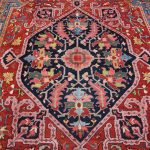 Heriz carpets have always been regarded as beautiful, tough objects of decoration, made in the north-west of Persia these handwoven works of art always have variations from one piece to another. Some draw influences from further north into the Caucasus and vivid colours like this particular carpet. A decorative yet practical carpet which has been used for over 100 years and stood the test of time.