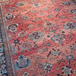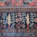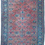 An early decorative antique Fereghan carpet with glorious colours. Woven in the last 1/4 of the 19th century with a floral pattern in very good condition for a persian carpet of this age. The subtle blue dyes are very charming and a lovely tone to furnish around. The border design consists of flowing trees in soft yellow tones with the main field a variety of pinky red dyes. A great palette of colours, rich and elegant which would work beautifully on a wooden floor. The carpet’s condition is good for its age – being around 140 odd years old. Some lower areas in places but no worn out areas or big restoration to this piece. Please view the additional images to see the colours close up and condition.