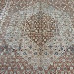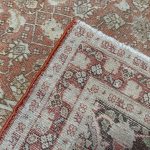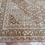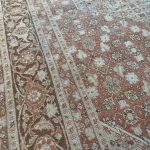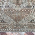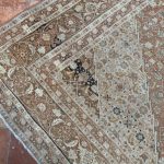 Over 140 years old this is a wonderful faded and slightly worn antique Tabriz carpet with earthy tones. Using varying shades of terracotta to brown shades, and off-white, grey wool, hints of sage greens and some blues. With lots of dye change, abrash – this is where the wool was changed as they weaved this carpet in the late 19th century. This adds immense character, a wonderful ancient antique Tabriz we would love to show you in our showroom or at home by appointment soon.