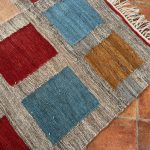 Each Kilim is being hand produced with the dyes made to old recipes. The dyes will therefore age in the same way that antique carpets have. We are dealing direct with the weavers of these modern kilims and they are also in charge of the dying processes involved to select the best colours for each piece.