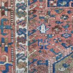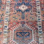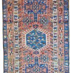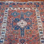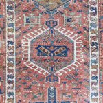 Heriz and Karaja are not far from the Azerbaijan Border so they draw influences from many Caucasian rugs and runners. They are easily recognisable with repeating medallions similar to those in caucasian rugs. The central motif is often the latch-hooked design motif or an eight-pointed star. The village weavings of Karaja such as this runner often use a simpler repeating medallion design with a great array of colour.