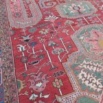 The reason Heriz rugs are so tough is that Mount Sabalan is located close to Heriz and sits on a major deposit of copper. Traces of copper in the drinking water for the sheep produces high quality wool that is far more resilient than wool from other areas.