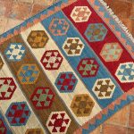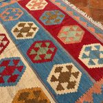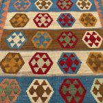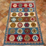 Each Kilim is being hand produced with the dyes made to old recipes. The dyes will therefore age in the same way that antique carpets have. We are dealing direct with the weavers of these modern kilims and they are also in charge of the dying processes involved to select the best colours for each piece.