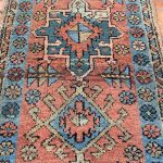 Heriz and Karaja are not far from the Azerbaijan Border so they draw influences from many Caucasian rugs and runners. They are easily recognisable with repeating medallions similar to those in caucasian rugs. The central motif is often the latch-hooked design motif or an eight-pointed star. The village weavings of Karaja such as this runner often use a simpler repeating medallion design with a great array of colour.