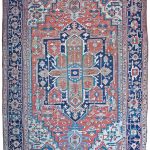 The Heriz region produced exceptional hand-woven carpets and rug by Azerbaijan Turkish inhabitants close to the city of Heris in North-West Persia. They are famous among designers and collectors because of their vivid geometric designs and stunning vegetable dyes with soft earthly tones.