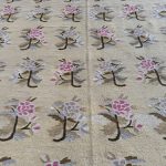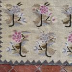 Late 19th century pieces such as this floral design had softer colours than the Kilims woven in the early part of the twentieth century. The dancing flowers in the border design and abstract floral designs in the main field are beautifully subtle. Often similar in design to that of Caucasian designs such as Karabagh. We love how the background of these Kilims have almost a wave like effect, look closely at the image to see this clever weaving technique in the charcoal black. There is also some great dyes and variety of yellows and subtle pale blues and green. An exceptional example and with our underlay this would sit happily on a wood floor, tiles or fitted carpet.