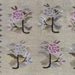 Carpets and kilims were woven with sheep wool on the vertical or horizontal looms; sometimes hemp or flax was used for the base. Woolen yarn was dyed with natural dyes from local plants and insects. A group of kilims with floral patterns were produced from central regions of Ukraine (Poltava, Kyiv, Chernihiv) Ornament consists of images of flowers, more or less stylized or branches with flowers arranged rhythmically or related to the overall pattern.