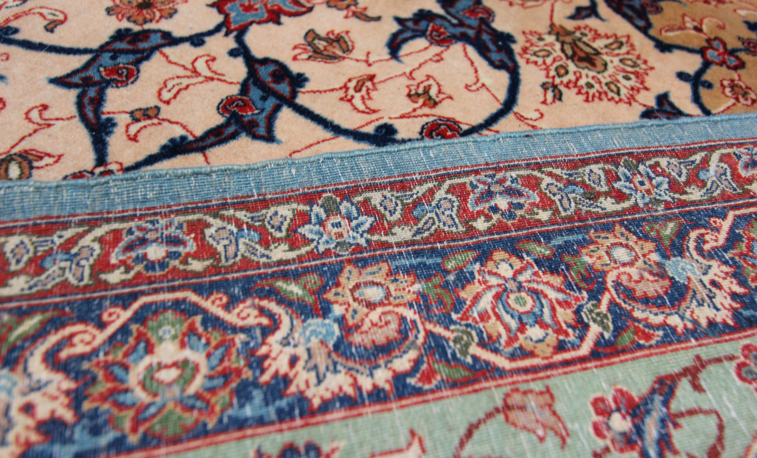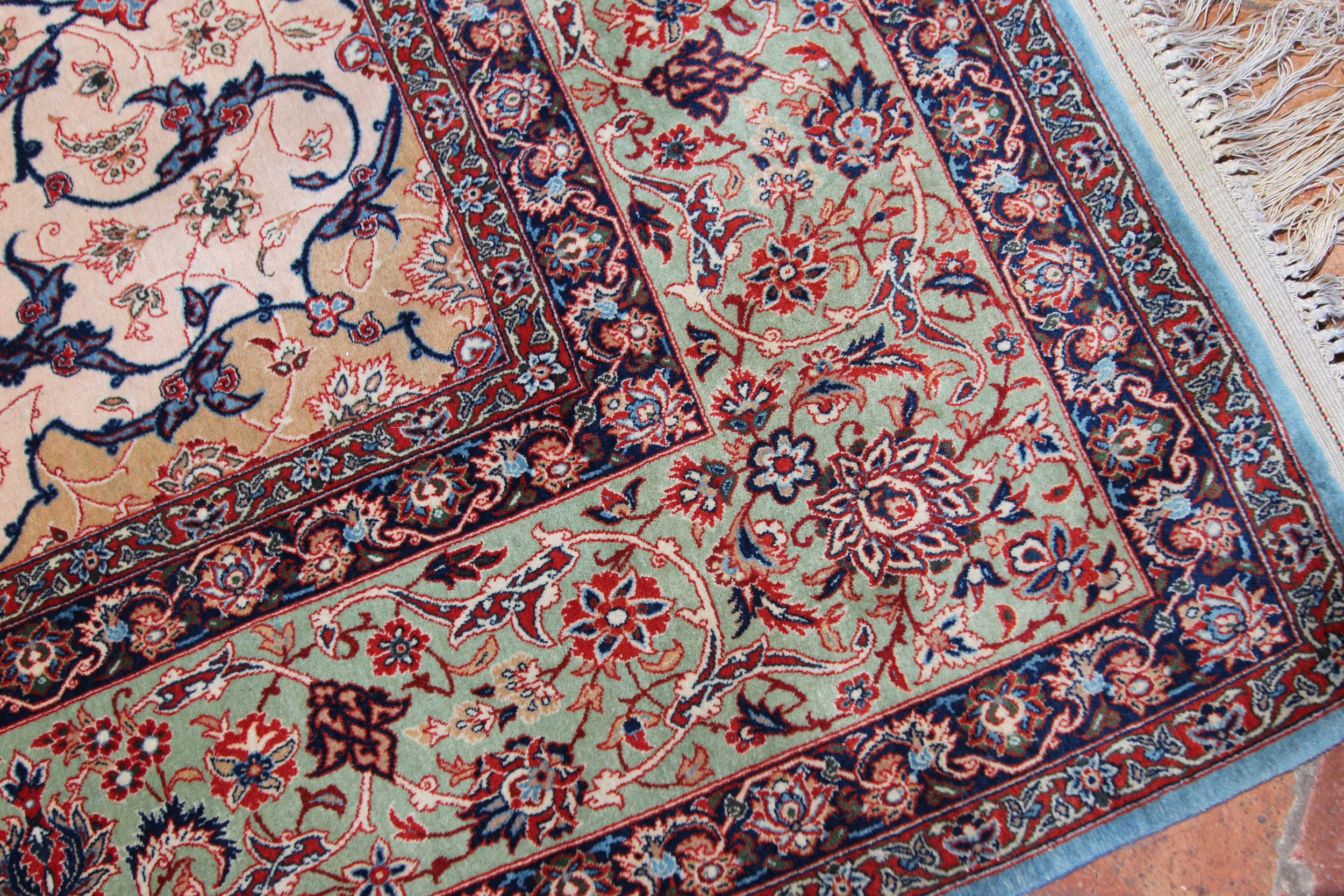 We offer the service of viewing any of our carpets & rugs in-situ in London, Surrey, Hampshire & the UK by appointment. Please request a home visit to see this amazing elegant wool and silk Isfahan carpet in your own home.
