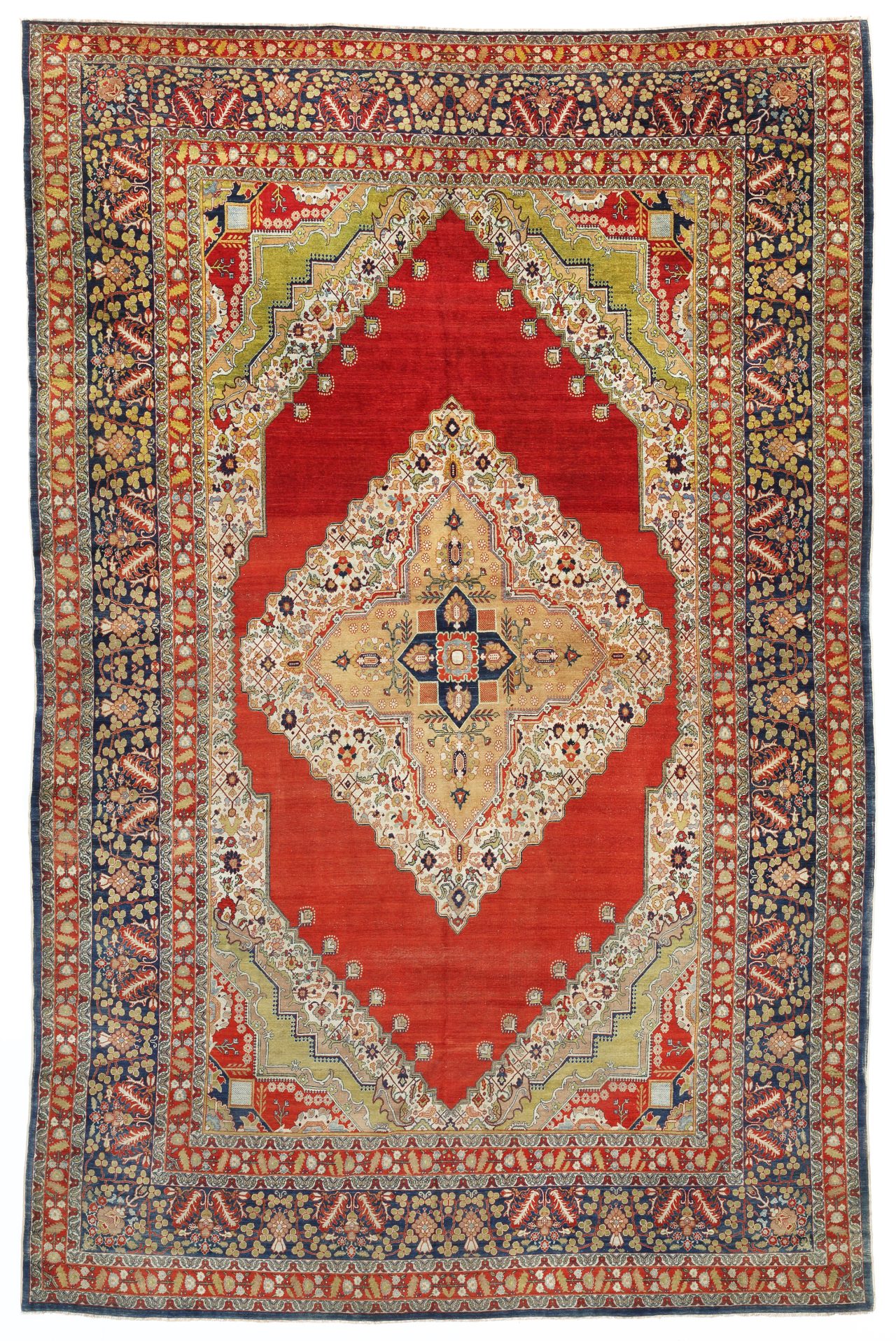 A very fine large antique Sivas carpet woven in central Anatolia, dating from the late 19th century, it has wonderful dye change throughout the carpet where different dyes have been used and faded over the last 100 plus years. With a cotton foundation it allows for a finer weave compared to other Turkish carpets such as Oushak. The design is classical and Persian in influence, with an exquisite and intricate medallion and corner motifs. A swirling border design of subtle plants and flowers. Condition is very good, with the carpet having a fine wool pile all over, a couple of tiny lower areas of pile but nothing significant.