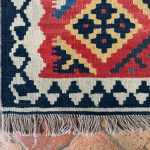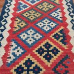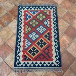 Each Kilim is being hand produced with the dyes made to old recipes. The dyes will therefore age in the same way that antique carpets have. We are dealing direct with the weavers of these modern kilims and they are also in charge of the dying processes involved to select the best colours for each piece.