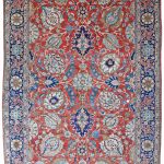 A wonderful antique ‘Benlian’ Tabriz carpet, in excellent pile condition and with rich natural dyes of rust reds and blues. During the beginning of the 20th century, the Benlian workshop successfully reinterpreted classic artistic rugs of the 16th/17th century Safavid period and created some of the best quality carpets for the European market. This beautiful antique Tabriz was produced in the workshop established in Tabriz by the British-Armenian firm of Benlian, whose distinctive signature is the star we can see visible in the bottom left-hand corner of the inner minor border.