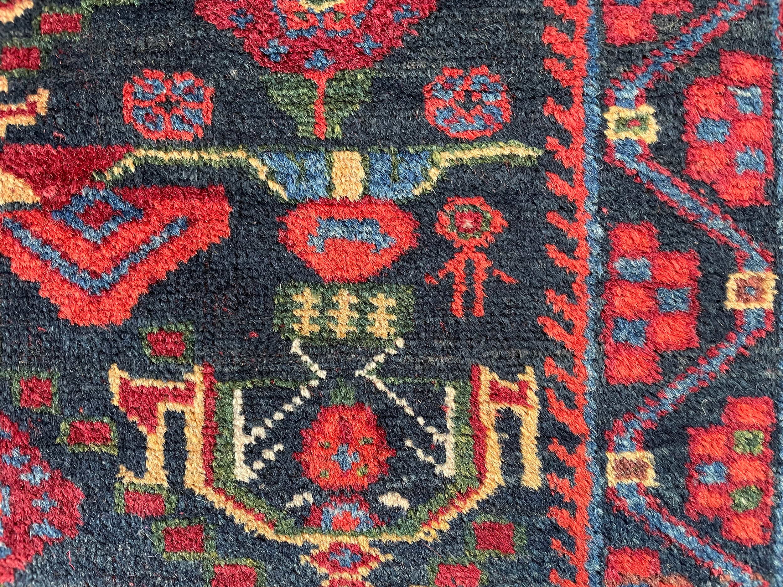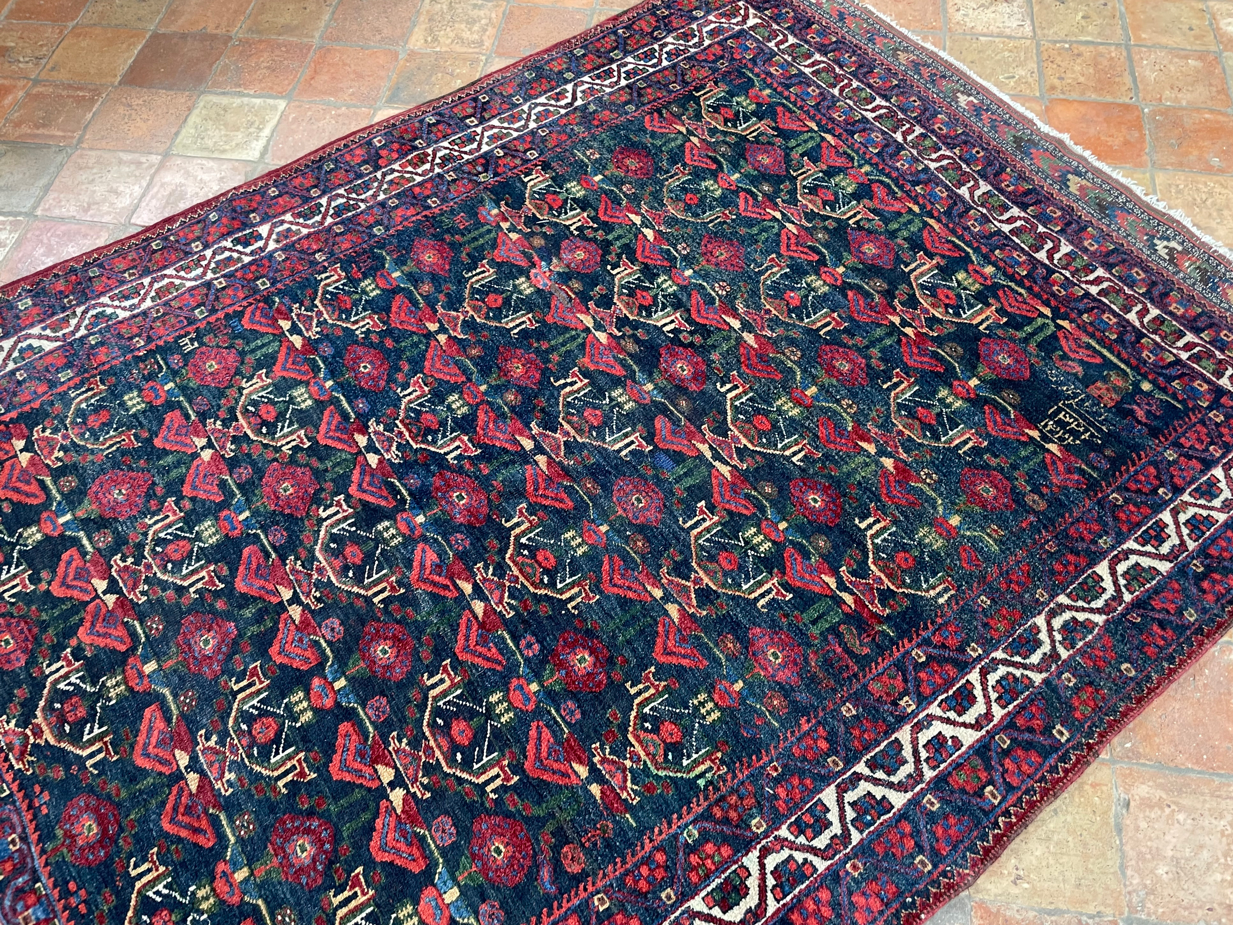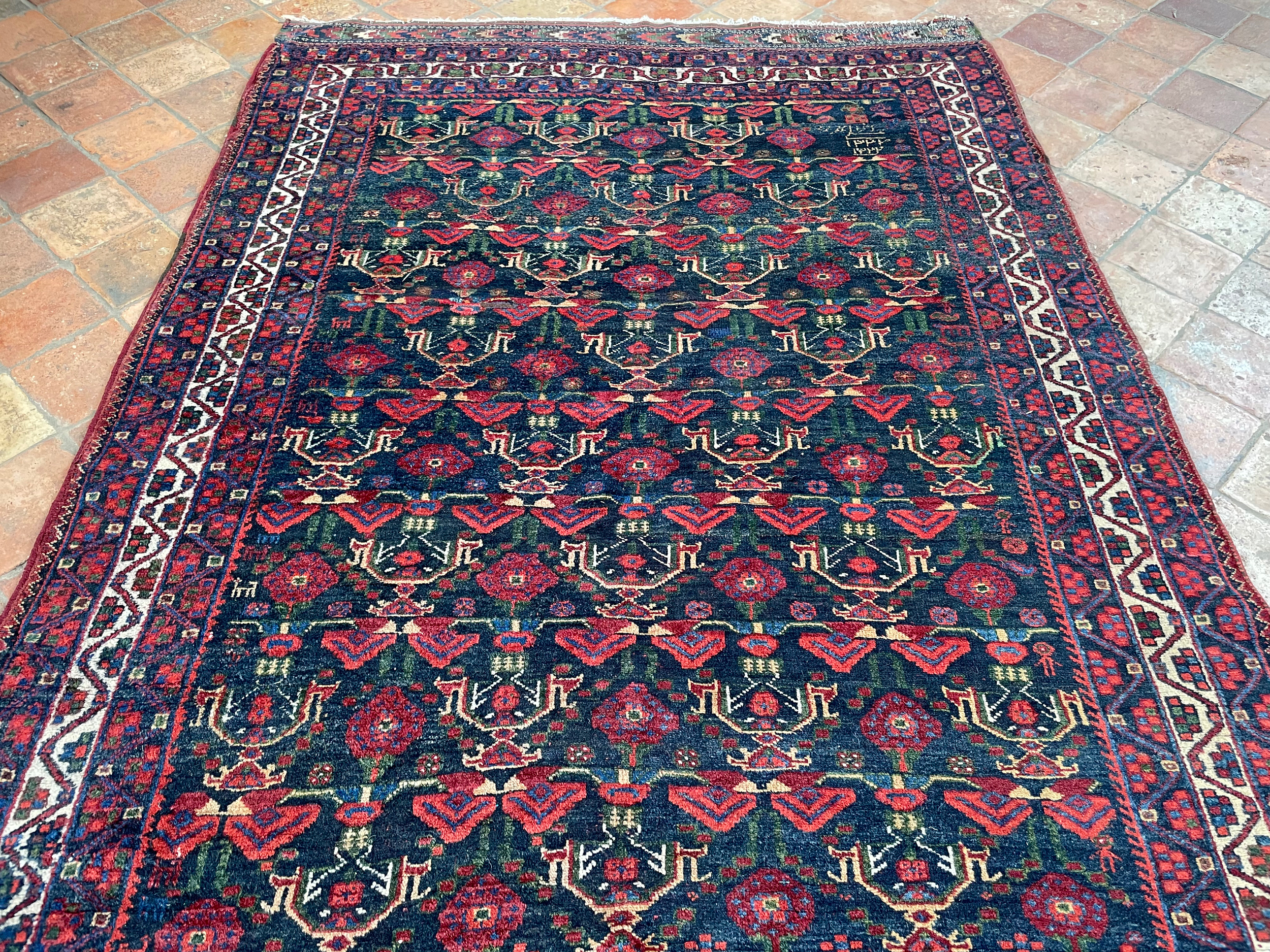 Arrange a visit to our barn showroom in Surrey to see this antique Afshar rug up close.
