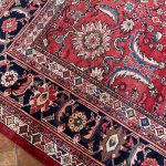 Ziegler-Mahal’s are called as such, because the Ziegler workshop produced carpets from their own looms with their own designs. Using traditional Persian patterns consisting of small palmettes, floral rosettes and leaves, these were soon commissioned in grand sizes for the Western market and the designs, in particular the palmettes, were blown up to large proportions. Often these Ziegler-Mahals can be considered earlier productions from the workshop, before designs were scaled up and large 5 x 4 metre examples were produced.
