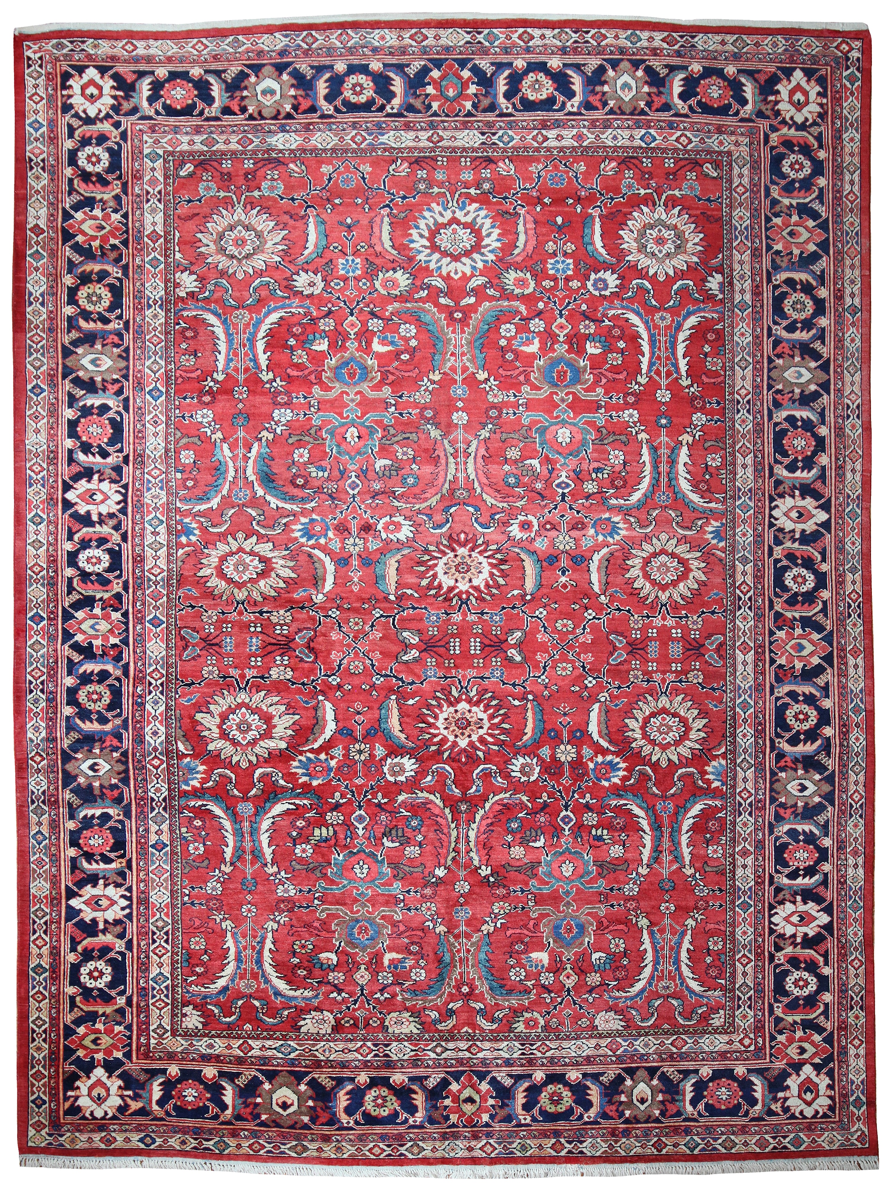 Ziegler-Mahal’s are called as such, because the Ziegler workshop produced carpets from their own looms with their own designs. Using traditional Persian patterns consisting of small palmettes, floral rosettes and leaves, these were soon commissioned in grand sizes for the Western market and the designs, in particular the palmettes, were blown up to large proportions. Often these Ziegler-Mahals can be considered earlier productions from the workshop, before designs were scaled up and large 5 x 4 metre examples were produced.