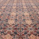 A delightful, oversize pale antique Mahal carpet with a delicate soft pink background, gentle greens, deep blues and a wonderful all over lattice design. We love the corner spandrels in deep blues with some subtle white ivory dyes too. Dating from around circa 1900-1910 it has been well crafted by weavers from Sultanabad, often these large sizes were commissioned for homes in the West.