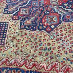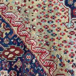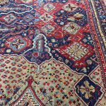 Ushak’s from the 16th century are more often in museums on display. In the 17th century Oushaks have been made in high quantities for the Christian churches, and court dynasties of Europe and this continued into the 18th and 19th century. Oushak rugs were used by great artists in their paintings and by this contributed to their history, value and demand. The Arabasque design in yellow on a red ground were named after painters like Hans Holbein and Lorenzo Lotto. We see rare Lotto rugs and fragments reach very high prices at auctions these days.