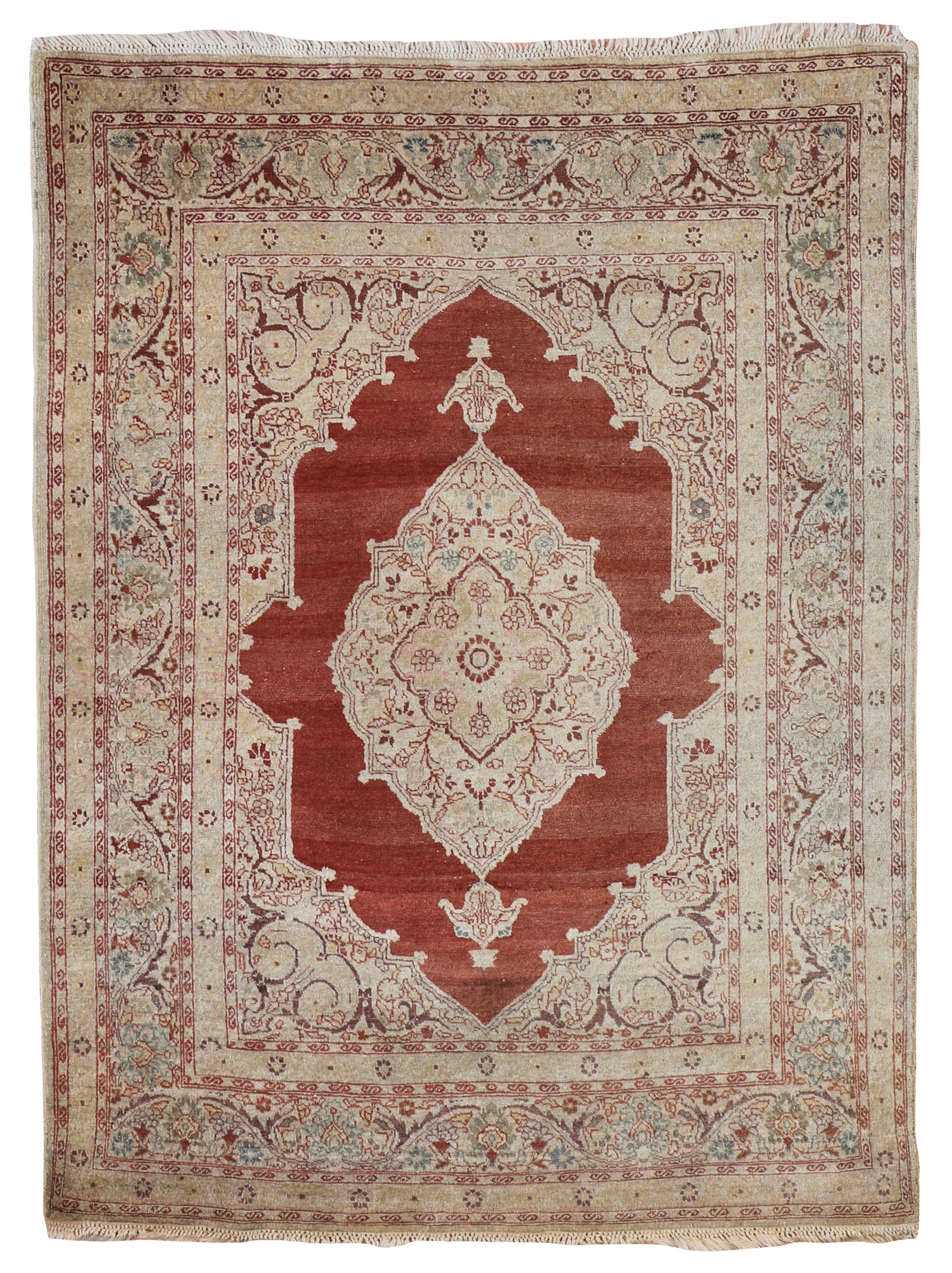 Tabriz is a city located in the north-west of Persia, it was the major centre for production of rugs and carpets. They more than often will have central medallions but like every rug, the dyes play a huge part in a rugs beauty. It is the soft muted colours combined with the well thought put design that make this rug so appealing. Please feel free to email or call us with any further questions about this antique Tabriz rug.