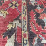 One of the largest rug production areas since the Ottoman Empire, Ushak designs tend to be more open than Persian rugs and softer dyes are common, especially on earlier pieces. Often younger Ushaks or Oushaks will be rich red in colour and use bolder geometric designs. This good condition Oushak carpet or Ushak has a good full wool pile throughout the carpet. No significant losses or damage and ideal for any room with underlay we supply.