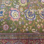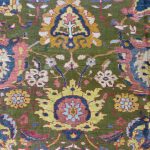 A rare green back ground antique Ziegler carpet, woven around 1880-1890, the large scale design is exquisite with amazing yellow, pale blues and pink natural dyes.  A warmer red border colour with a flowing border design is wonderful compliment to the overall look of this large carpet.