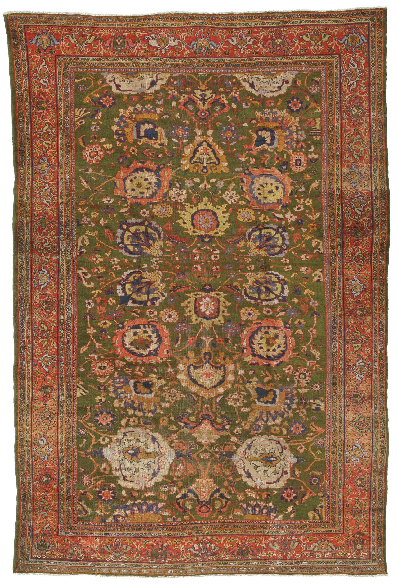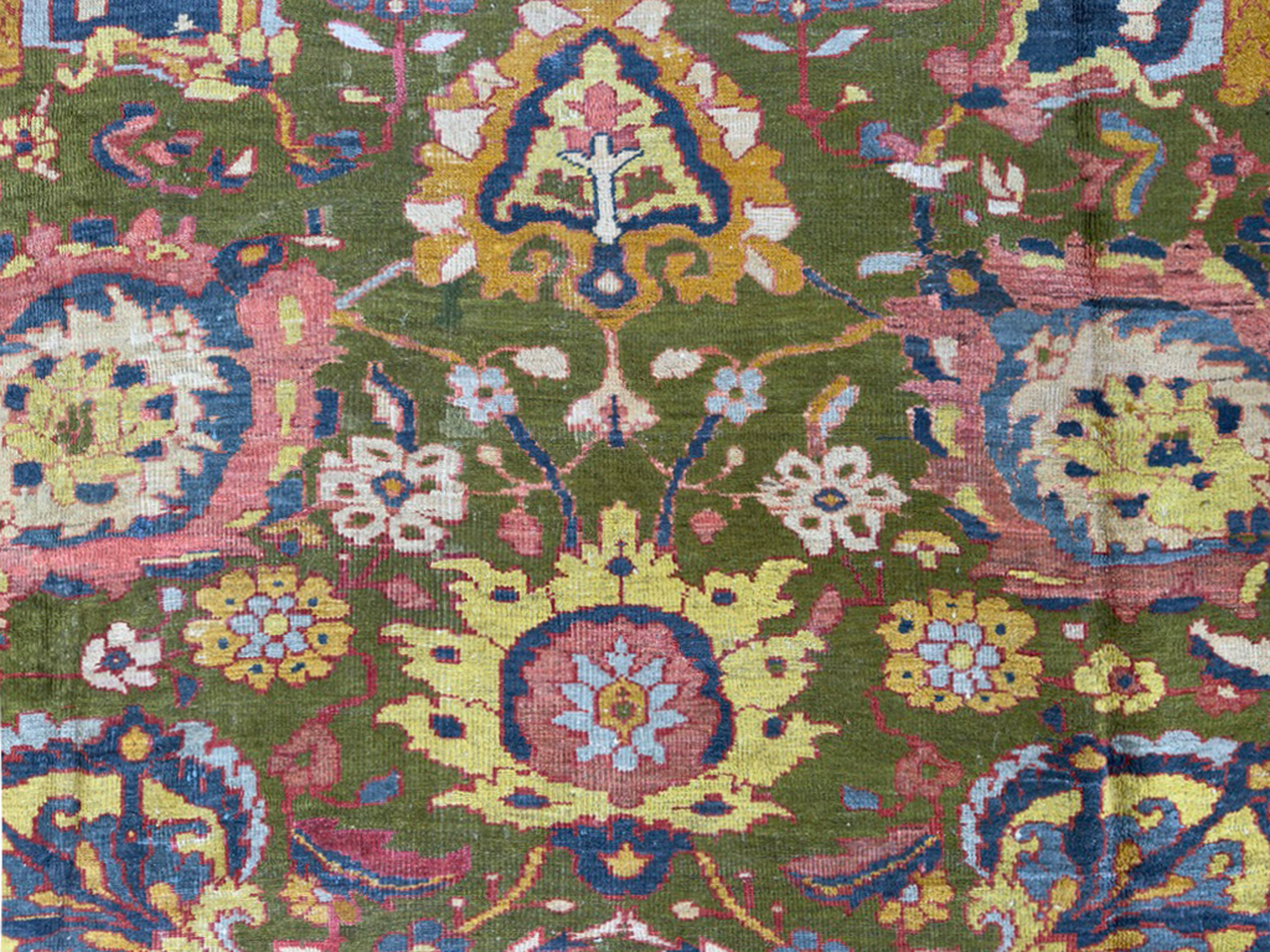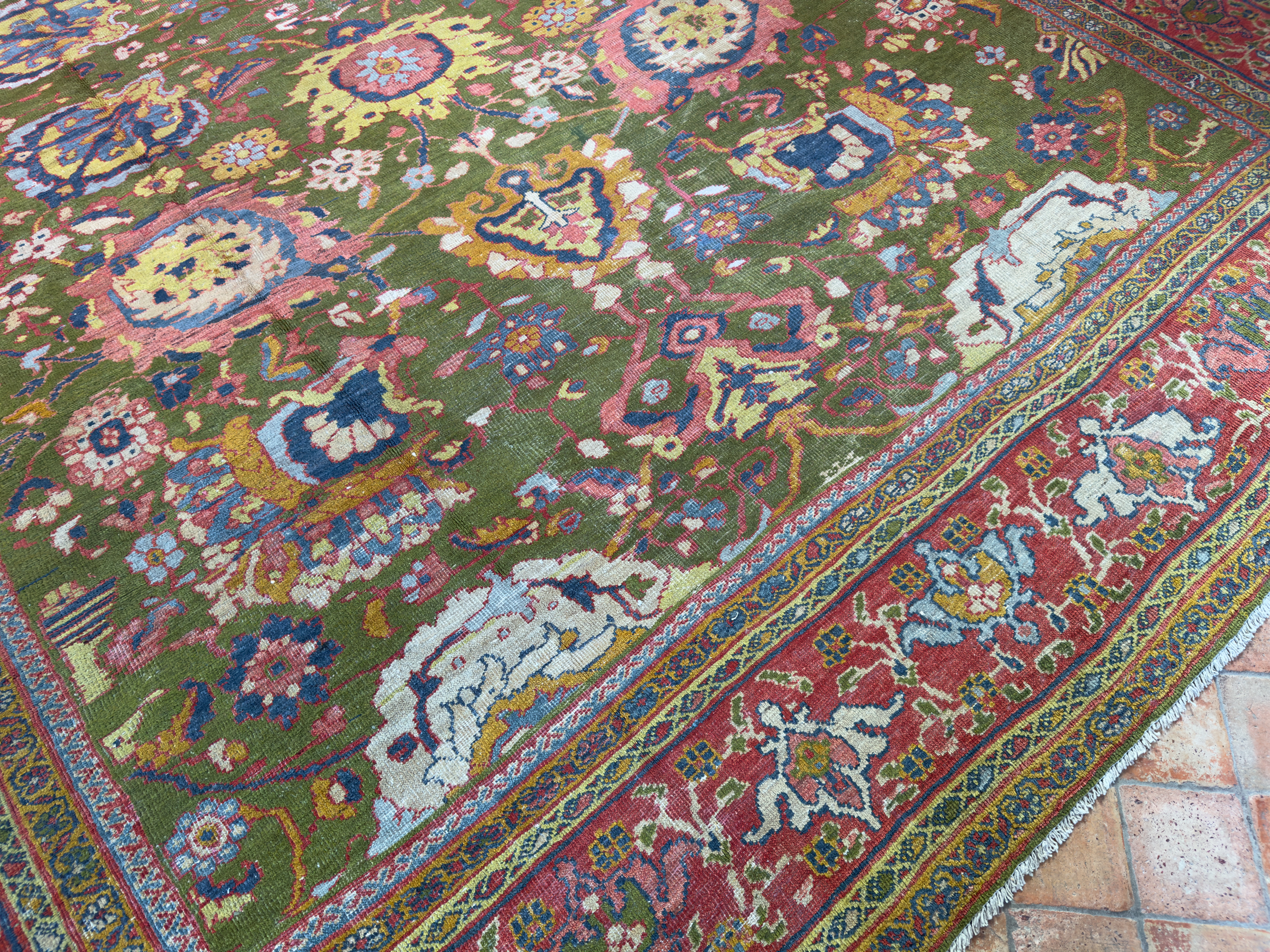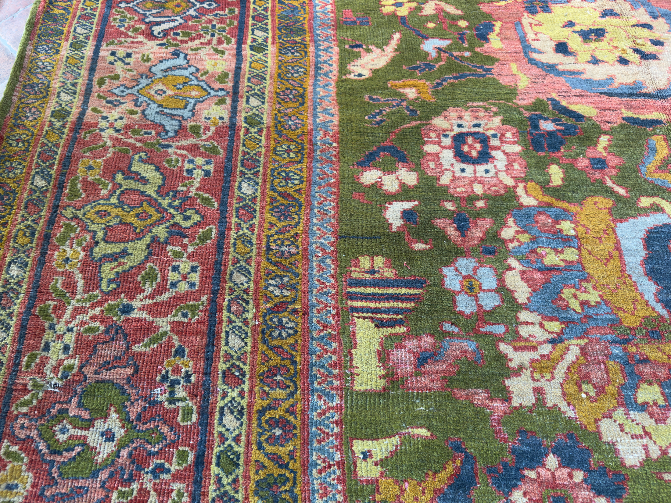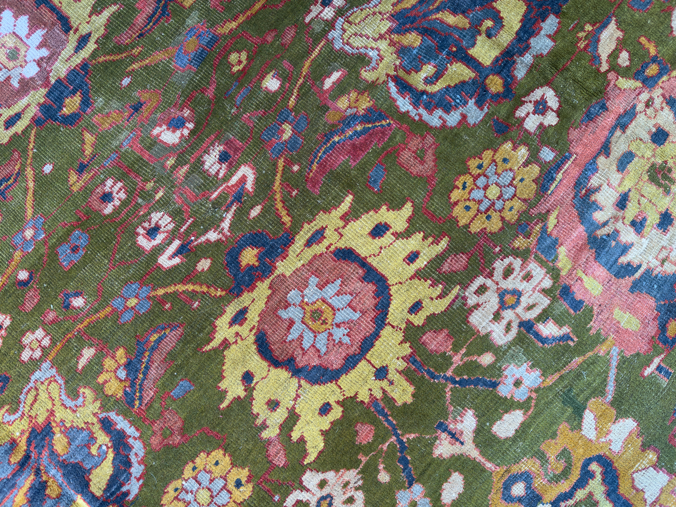 Please request a home visit to view this stunning rare green antique Ziegler carpet in situ on a convenient day and time.  We are happy to travel to anywhere in the UK.